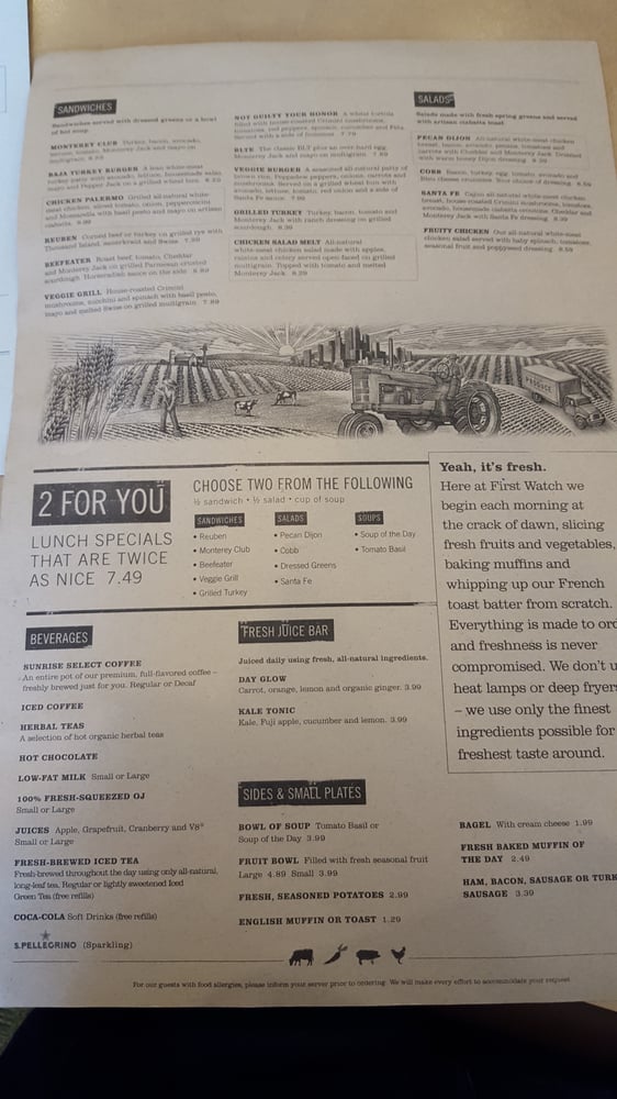 Welcome to First Watch Columbus, where the essence of American breakfast and brunch comes alive in a vibrant setting. Nestled at 2103 Polaris Pkwy, this café not only serves delicious meals but also prioritizes quality, freshness, and an inviting atmosphere. The menu offers a range of options that cater to diverse tastes, highlighted by the Frittata Rustica and the hearty Works Omelette, each crafted with authentic ingredients that ensure a delightful culinary experience.